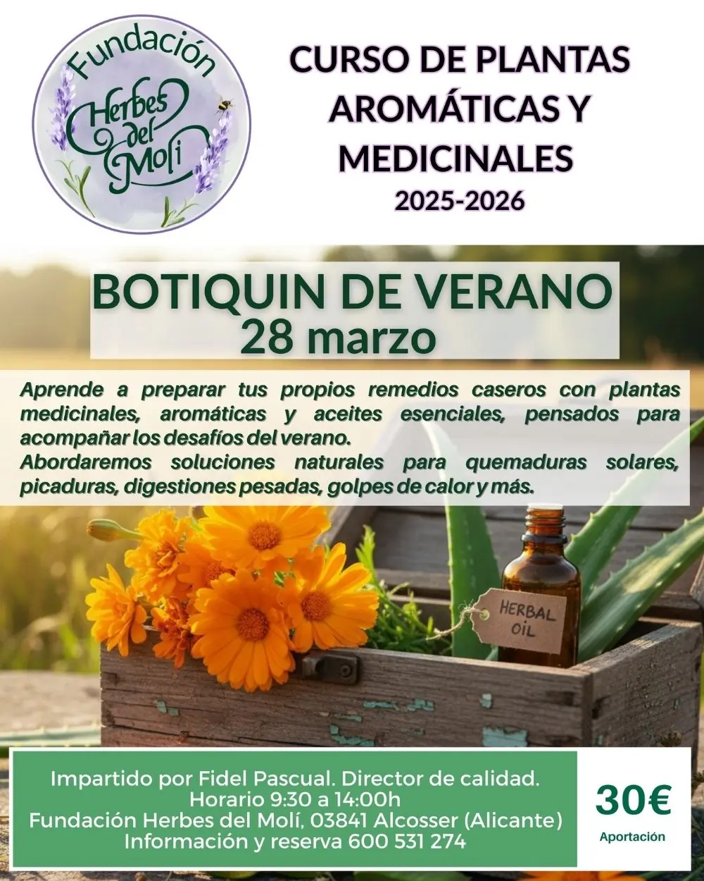 Botiquín de Verano Fecha del curso: Inscribirme al curso Descripción del curso Aprende a preparar tus propios remedios caseros con plantas medicinales, aromáticas y aceites