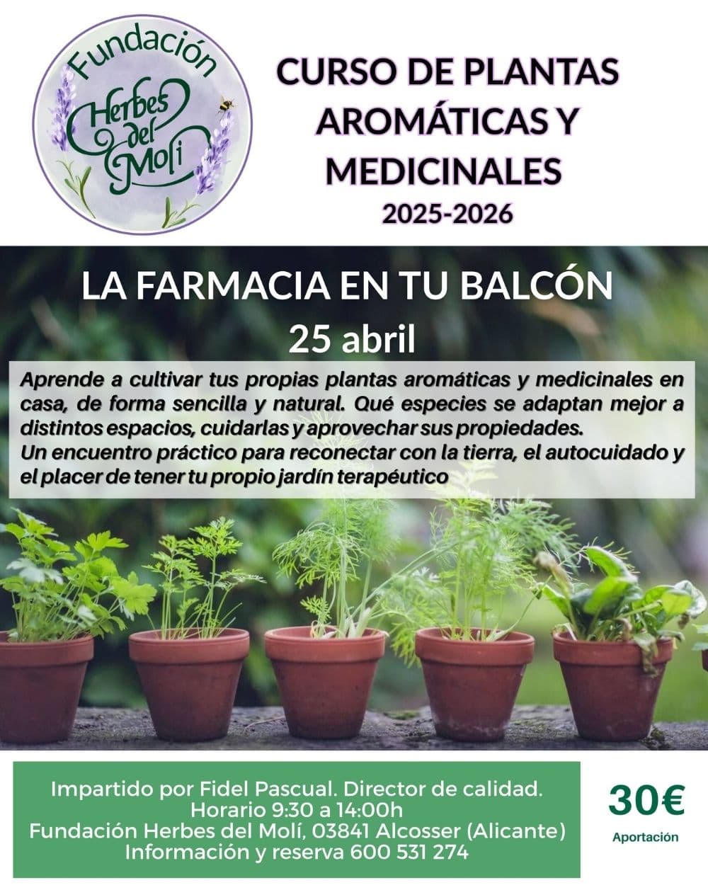 La Farmacia en tu Balcón Fecha del curso: Inscribirme al curso Descripción del curso Aprende a cultivar tus propias plantas aromáticas y medicinales en casa,